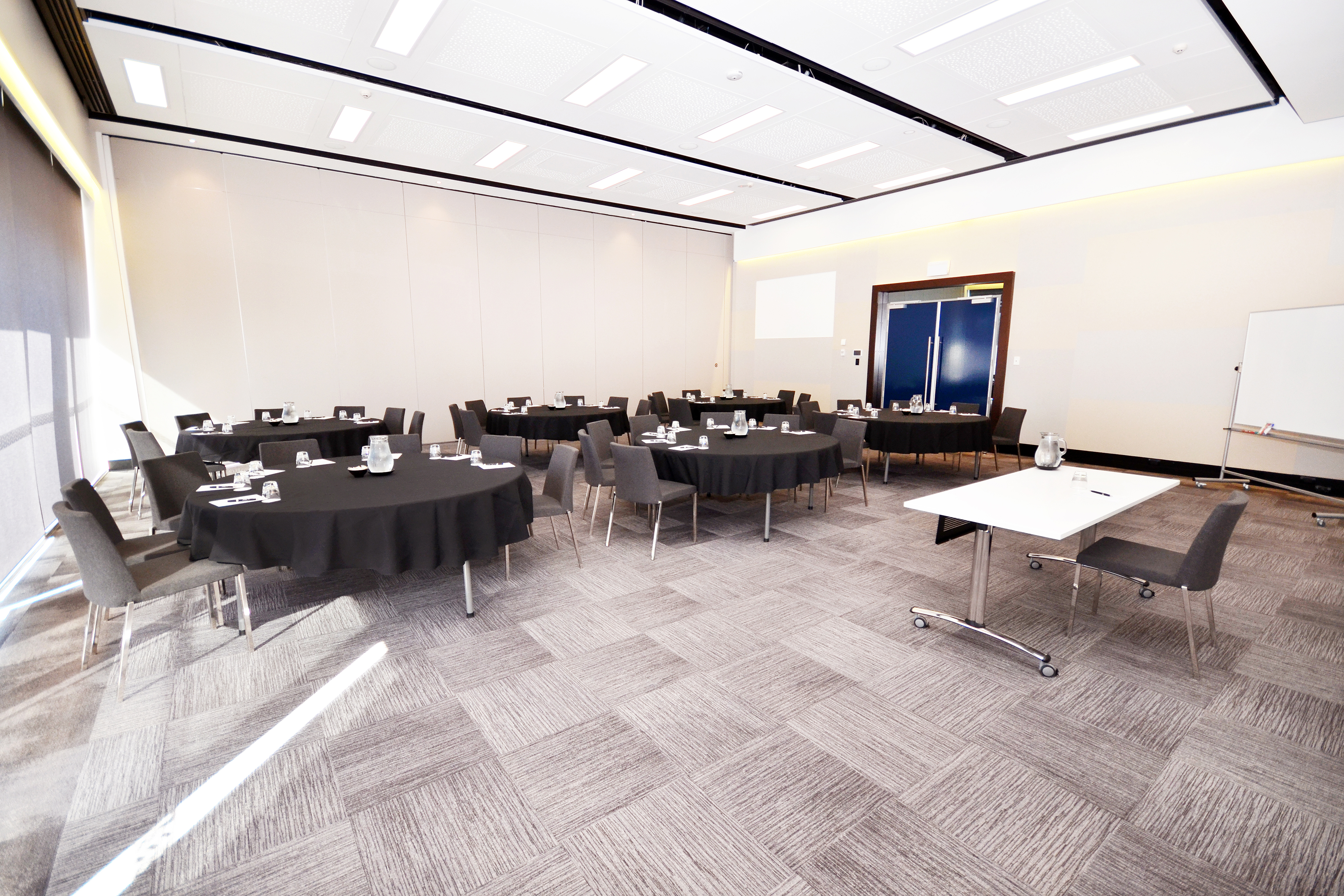 The Pukeko Room is located on the ground floor and is 114m2. This room is ideal for numbers from 40 to 125 people depending on seating style.