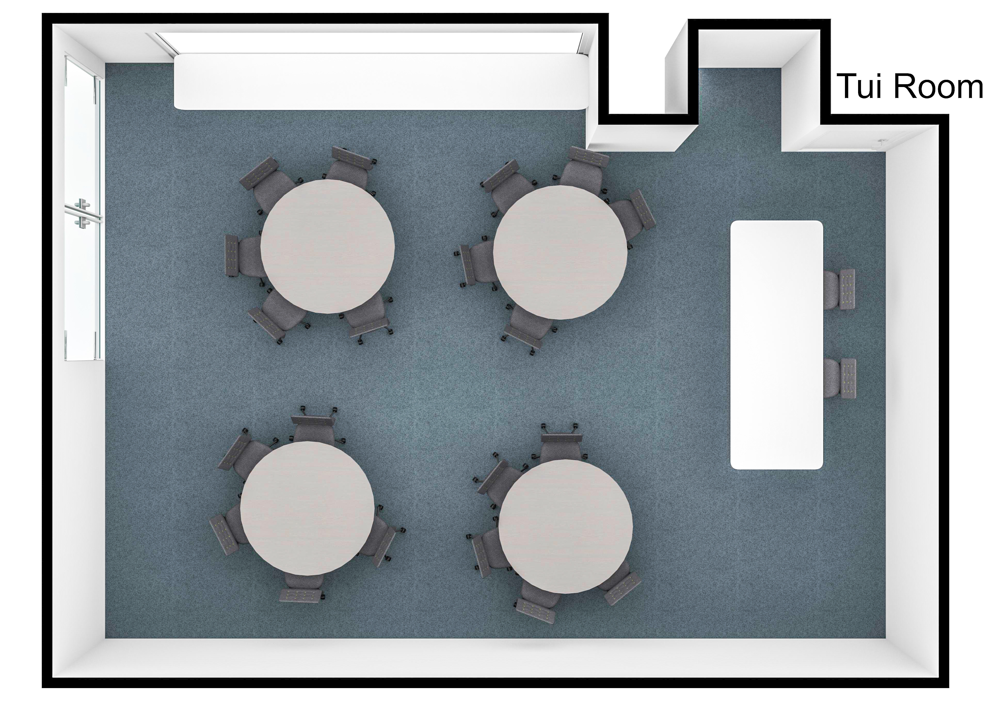 The Tui Room is located on the top floor and is 70m2. This room is ideal for numbers from 28 to 80 people depending on seating style.